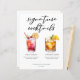 Cette liste de cocktails chic et signature présente une typographie noire simple au-dessus de 2 boissons mignonnes et leurs ingrédients pour votre bar mariage. Un Dirty Shirley Temple et un Bourbon Smash ajoutent une touche cool à votre menu du bar. Complétez avec les noms du couple et la date de leur réception.
