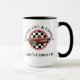 Cette tasse de style combo présente mon logo "Distinctif & Unique" Corvette. Le design a une Corvette vintage sur un motif à damiers noir et blanc. La jante et la poignée, de la tasse, sont vitrées de façon éclatante dans des couleurs riches. Montré ici en noir et disponible en cinq couleurs. Ce produit peut être customisé.