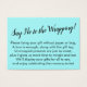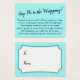 Si vous êtes l'hôte d'un baby shower d'affichage sans cadeau pour la future maman, cette carte simple pourrait être le choix pour vous. En utilisant une jolie police de script moderne, j'ai d'abord ajouté un en-tête qui annonce l'intention d'une façon légèrement décalée : "Dites non à l'enveloppement !" sur le devant, et "à" et "de" pour le côté de l'étiquette cadeau. Le champ modèle a été mis en place pour offrir des instructions aux clients qui ne mettent pas leur présent dans leur enveloppe. N'hésitez pas à modifier le libellé de la façon que vous souhaitez. Toutes les polices et les couleurs peuvent être modifiées à votre gré.