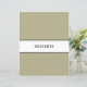 Page de séparation double face personnalisée pour un classeur de recette de coordination ; une conception d'un ensemble de correspondances. Dispose d'un design minimaliste moderne simple dans une palette de couleur verte moderne avec du texte personnalisable présenté sur une bannière blanche de coordination avec accents noirs Banner affiche du texte personnalisé avec le texte "DESSERTS" en police simple. Vous pouvez customiser en changeant le texte à l'aide des champs fournis ou en utilisant le bouton "message" pour contacter le concepteur pour obtenir de l'aide. Pour créer votre propre livre de recettes sujet diviseur : 1. Sélectionnez personnaliser ce modèle. 2. Remplacez le texte. 3. Vérifiez votre conception pour le dimensionnement et le placement. Un simple séparateur d'index de livre de recettes pour compléter votre trousse de classeur de recettes de livre de recettes, pour organiser vos recettes ou vos plans de repas, ou un cadeau de cuisine moderne réfléchi pour le cuisinier, le chef ou l'organisateur de votre vie.