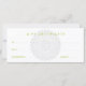 Un ornement à la mouille fait entrer le spectateur au centre de cette carte à carreaux en utilisant un traitement propre qui suggère un environnement serein. L'inverse est contre le blanc pour faciliter l'écriture avec l'impression de rosette dans le dos comme filigrane. Remplissez les lignes comme vous voulez. Utilisez comme certificat-cadeau pour un salon ou un spa, un massothérapeute ou un professionnel du bien-être, ou un magasin de détail axé sur les cadeaux, les vêtements ou les accessoires. Disponible en couleurs alternatives avec des produits correspondants.
