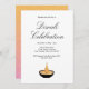 Invitation de Diwali Celebration, avec un design de lampe à flamme en noir et or et écriture de script. Avec du texte personnalisable en noir, vous pouvez ajouter vos propres informations. Le dos a un arrière - plan parties scintillant rose et or, une façon élégante de planifier votre fête Festival of Lights ou votre réunion de famille.