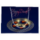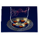 Illustration heureuse de Diwali : Un mandala d'or avec Ganesha Rangoli et 5 diyas sur un arrière - plan bleu-foncé.