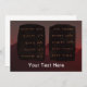 Le mont Sinaï a été couvert par le nuage pendant six jours, après quoi Moïse est allé au milieu du nuage et a été "dans la montagne quarante jours et quarante nuits." (Exode 24:16-18) G-d a écrit les Dix Commandements ou Aseret ha-D'varim (Dix Déclarations, ou Dix Déclarations) comme ils sont connus dans la Torah (Aseret ha-Dibrot. Textes rabbiniques)) sur les tablettes avec Son doigt. "Dix Commandements" est une fausse traduction en hébreu dix commandements, qui serait Aseret ha-Mitzvot. D'après un midrash, les mots des Dix Commandements n'étaient pas gravés sur la surface, mais plutôt s'ennuyaient à travers toute l'épaisseur de la pierre. Les pierres dans la partie centrale de certaines lettres n'étaient pas reliées au reste de la tablette, mais elles ne tombent pas. Et les tablettes qu'ils pouvaient lire exactement de la même manière de part et d'autre, et non de l'autre, comme on pouvait s'y attendre. Cette écriture miraculeuse n'aurait pu être accomplie que par Dieu lui-même. Il est également possible que la tablette ait été gravée de part et d'autre avec certains des commandements d'un côté, d'autres de l'autre. Cela permettrait aux comprimés d'être plus petits qu'ils ne le seraient autrement et, par conséquent, moins lourds. Moïse était sur la montagne quarante jours et quarante nuits." (Exode 24:16-18). Vers la fin de cette période, les enfants d'Israël décidèrent que quelque chose devait arriver à Moïse et ils prièrent Aaron de faire un veau d'or. Lorsque Moïse descendit, il vit l'idole et brisa les tablettes en colère. Plus tard, D. ordonne à Moïse de "mâcher les deux tables de pierre comme au premier; et j'écrirai sur ces tables les mots qui étaient dans les premières tables, que tu braves." (Ex.34, 1) "Et il écrivit sur les tables, selon la première écriture, les dix commandements que l'Éternel vous a adressés dans la montagne au milieu du feu. Jour de l'assemblée : et l'Éternel me les donna." (Deutéronome 10:4) Il n'est pas connu dans quelle langue les commandements étaient écrits comme historien nous dire que l'hébreu n'existait pas encore comme langue pleinement formée au moment de l'Exode. Il peut avoir été proto-cananite à partir duquel la langue hébraïque et l'alphabet ont émergé. Certains disent que les tablettes ont été gravées dans les hiéroglyphes égyptiens alors que Moïse avait été instruit dans le tribunal de Pharaon. À des fins esthétiques, j'ai utilisé la forme traditionnelle abrégée des Commandements dans une police moderne. D'autre part, je n'ai pas utilisé la forme ronde de la tablette généralement vue. Les tablettes de ce type étaient typiques de celles fabriquées dans l'empire romain. Je crois que la deuxième série de comprimés serait plus grossièrement taillée.