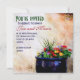 Fleurs vives dans une casserole bleue, repérées à Père Noël Fe, NM, contre un motif arrière - plan adobe invités invitations à un événement avec un caractère sud-ouest.