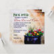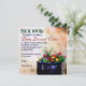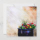 Fleurs vives dans une casserole bleue, repérées à Père Noël Fe, NM, contre un motif arrière - plan adobe invités invitations à un événement avec un caractère sud-ouest.