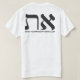 Customisez avec les coordonnées de votre ministère. L'hébreu moderne Aleph Tav T Shirt. Individuellement, les lettres représentent : "Aleph" l'"auteur" de la vie et "Tau" la "marque" de l'Alliance. (Comme : 'X marque l'endroit', 'J'étais ici' ou 'c'est le mien'). L'hébreu se lit de droite à gauche. Lorsque les lettres Aleph-Tav sont réunies, elles font le mot 'TA' couramment traduit 'eth' signifiant 'serment'. Le mot ’TA’ est trouvé plus de 7300 fois dans la Bible du Roi James. La première mention est dans Genèse 1:1 qui dit : "Au commencement Dieu créa TA le ciel et la terre." Notre Créateur met Sa "Marque" sur tout ce qui lui appartient. H853 (Forte) אֵ ת 'êth ayth Apparemment contracté à partir de H226 dans le sens démonstratif de l'entité ; proprement soi (mais généralement utilisé pour souligner plus clairement l'objet d'un verbe ou d'une préposition, même ou à savoir) : - (Comme tel non représenté en anglais.) Nombre total d'occurrences de KJV : 7302. do-it-yourself T-shirt prédicateur de rue Aleph Tav.