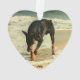 La peinture de Digitals d'un beau Pinscher de dobermann gambadant sur la plage comme ressacs lavent sur le rivage et des empreintes de pattes de partir dans le sable.