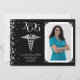 Célébrez le nouveau docteur en médecine diplômé de l'école de médecine avec ce faire-part de graduation en argent et en noir de la médecine du caducée! Elégant avec une bordure photo vintage et des accents de confettis argentés! Idéal pour toute personne diplômée en tant que médecin ou ayant un doctorat !