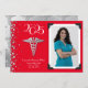 Célébrez le nouveau docteur en médecine diplômé de l'école de médecine avec ce faire-part de diplôme en argent et en rouge de la médecine. Elégant avec une bordure photo vintage et des accents de confettis argentés! Idéal pour toute personne diplômée en tant que médecin ou ayant un doctorat !