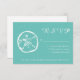 Elégante carte de mariage de plage de sable turquoise dollar RSVP. Fait partie d'un ensemble de thèmes sanddollar. Donnez à vos invités un moyen de répondre s'ils viennent à votre mariage élégant de destination de plage en été. Ce design va de pair avec les invitations à la réception de mariage. Qualité du texte et du papier personnalisable. Typographie de script chic. Joli design de destination tropicale pour le mariage en juin, juillet, août, septembre etc.