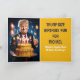 DONALD TRUMP CARTE D'ANNIVERSAIRE avec TRUMP tenant un fantastique gâteau d'anniversaire coloré avec des bougies éclairées. Tout le texte et les polices peuvent être modifiés.