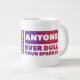 Jumbo Certains jours, une tasse de joe de taille régulière ne le fera pas. Quand vous avez besoin d'une dose de caféine en plus, utilisez votre tasse XL de Zazzle. Peut contenir jusqu'à 591 ml. Idéal pour des soupes, céréales, glaces et du chili aussi ! Cette tasse géante à une anse en forme de C pour une utilisation confortable. Dimensions : Hauteur : 4,5" Diamètre : 3,9" Capacité : 20 onces Micro-ondes et lave-vaisselle sans danger Construction céramique forte Satisfait ou dépasse les exigences de la FDA en matière de salubrité des aliments et des boissons Imprimé à la demande dans Reno, NV Designer Astuce : Pour assurer une impression de la plus haute qualité, veuillez noter que l’aire de conception personnalisable de ce produit mesure 4 po x 10,5 po