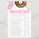 Devine qui l'a dit. Était-ce la mère ou le père ? | Ajoutez ces baby showers amusants et ludiques He Said She Said carte de jeu à votre événement. Cette carte de jeu de baby shower propose des beignets rose, blanc et chocolat avec des arroses colorées. Personnalisez en ajoutant des noms, des événements et des dates. Ce jeu de baby shower de beignets d'aquarelle est parfait pour It's a Girl baby showers.