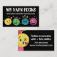 Baguette colorée ou boules griffées de fil avec des visages émoji sur ce carte de visite pour un tricot ou tricot artisanat, crochet, fil à l'habitacle ou autre artisan de fil.