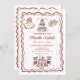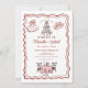 Ce faire-part de mariage à thème italien fantaisiste présente des gribouillis et des gribouillis en rouge. Une bordure ondulée encadre l'invitation romantique d'inspiration italienne. Un thème parfait pour le couple qui part pour une lune de miel italienne romantique après le mariage. Cette invitation n'est disponible qu'en version imprimée.
