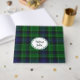 Livre d'invité Plaid mariage fait dans le classique écossais vert, bleu, blanc et noir Abercrombie clan tartan plaid motif. Une zone de texte ovale décorative blanche, à l'avant du livre, dispose d'un texte personnalisé prêt à être personnalisé pour votre mariage.