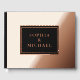 Un souvenir raffiné pour votre journée spéciale, ce livre d'hôtes présente un design simple et élégant avec des accents délicats en feuille qui mettent en évidence les noms et les détails clés. Faites votre choix parmi des feuilles d’or argentées ou roses pour correspondre au style de votre événement et ajoutez un brasseur subtil à la couverture. Le dos offre de l'espace pour une photo personnelle, parfait pour présenter un moment fiançailles ou un portrait préféré. Idéal pour les mariages, les anniversaires ou les célébrations d'étape, ce livre d'hôtes allie design intemporel et touche personnelle, créant un bel espace où les invités partagent leur amour et leurs souvenirs.