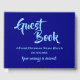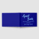 Ce livre d'or simple contient les messages "Livre d'or" et "Votre message est désiré !", ainsi qu'une date et une description personnalisées de l'événement et de l'occasion. Le texte est de couleur bleu ciel clair, et l'arrière - plan est de couleur bleue. Un livre d'or générique et personnalisable comme celui-ci pourrait peut-être être utilisé lors d'un événement tel qu'un mariage, une réunion de famille, une fête de retraite, un baby shower ou tout autre événement.