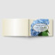 Livre d'hôtes mariage floral bleu à personnaliser avec les noms et la date. Des fleurs d'hydrangée bleues et réalistes recouvrent le devant d'un panneau ovale pour tenir le texte. A l'intérieur, des lignes sont fournies pour signature et des petits vers ou des souhaits de bienvenue des clients. La belle décoration florale fonctionne bien pour un mariage à thème bleu, ou jardin jardin événement.