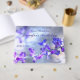 Personnalisez ou supprimez facilement le texte de ce livre d'or étonnant qui présente des fleurs bleues et violettes.