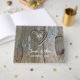 Ce livre d'hôtes est l'ajout parfait pour un mariage campagnard rustique — le coeur en bois sculpté peut être personnalisé avec vos initiales. Vos noms et votre date peuvent également être ajoutés pour créer un livre d'or unique pour votre journée spéciale. Copyright henishouseo