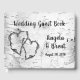 Livre d'hôtes mariage rustique avec design d'écorce de bouleau blanc. Deux coeurs sont "sculptés" dans l'arbre sur le dessin sur l'avant, avec des places pour les noms et la date du mariage. Idéal pour un mariage de grange ou une fête en plein air.