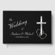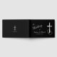 C'est un beau livre d'hôtes mariage chrétien traditionnel qui a une simple croix d'argent avec deux coeurs d'argent au pied de celle-ci. Votre texte personnalisé est à gauche des images croisées et cardiaques, et aussi en argent. L'arrière du livre est également noir, avec une image plus petite des coeurs et croiser au centre, et le texte "Deux deviendront un". Tout le texte est facilement customisé ou supprimé. Élégant !