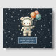 Célébrez votre baby shower avec élégance avec cet adorable livre d'or de l'astronaute de l'ours en peluche Cute Teddy Boy Baby shower. Doté d'un ours en peluche d'aquarelle douce dans un charmant costume entouré d'étoiles et de planètes, ce design est parfait pour une célébration sur le thème de l'espace. Les clients peuvent laisser des messages sincères, des souhaits chaleureux et des souvenirs, créant un souvenir précieux pour les années à venir. Personnalisez-le avec le nom de votre bébé, la date de la douche ou un message spécial pour le rendre vraiment unique. Idéal pour les baby showers de garçon, la décoration de pépinière, ou comme un cadeau réfléchi pour les parents en attente qui aiment le charme lunatique, céleste.