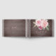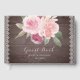 Design floral rose romantique à l'aquarelle dessinée à la main rose pastel, pêche et marsala avec dentelle vintage blanche sur arrière - plan de grains de bois rustique. Chic et élégant, grand livre d'hôtes mariage pour mariage vintage, mariage rustique ou mariage campagnard au printemps. Voir toutes les pièces correspondantes dans la collection ci-dessous.