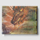 Livre d'hôtes mariage de style fée réalisé dans un arrière - plan vert et rouille, avec des graphiques de charnières à l'allure antique et de fabuleux dragons. Personnalisez le texte noir pour votre jour de mariage.