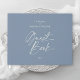 Célébrez votre journée spéciale avec cet élégant livre d'invités de mariage, qui présente un design bleu poussiéreux sophistiqué et des feuilles brillantes sur la couverture. La combinaison d’une police serif intemporelle et d’une disposition minimaliste crée un luxueux garde-corps qui préserve magnifiquement les messages chaleureux de vos invités. Idéal pour les mariages romantiques, côtiers ou classiques.