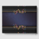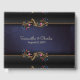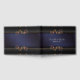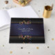 Beau livre d'hôtes mariage réalisé dans un design damassé bleu marine avec des bordures en noir et or, en haut et en bas. Graphiques de tons or métallisés fleuris à l'aspect floral rose et bleu émaillé, décorent l'avant et l'arrière du livre. Personnalisez le texte personnalisé, pour votre journée spéciale.