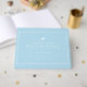 Un livre de pages vierges dans lequel les visiteurs ou les invités d'un événement (comme votre mariage) signent leurs noms... vos propres noms écrits dans un style de police blanc et fin sur une couverture bleu clair solide... une idée élégante pour vos souvenirs du "meilleur jour".