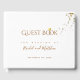 Un Mariage élégant et blanc Se connecter Livre, avec les noms de mariée et de mariée, un petit faux coeur d'or de l'amour et la parties scintillant en chute