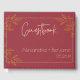 Ce livre d'hôtes moderne, simpliste et élégant de mariage bordeaux présente de beaux feuilles dorés et une combinaison de écriture et de lettrage simpliste. Vous pouvez customiser cette conception avec vos propres noms, et date mariage.
