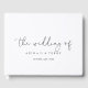 Cet élégant livre d'hôtes mariage de calligraphie simple est parfait pour un mariage rustique. Le design sobre et élégant présente une typographie de script classique et sophistiquée en noir et blanc. Customisez le couvercle avant et la colonne vertébrale pour y inclure les noms de la mariée et du marié et la date du mariage.