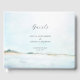 Un livre d'invités de mariage simple et élégant, avec une aquarelle représentant un rivage sauvage. Un beau choix pour un mariage à la plage ou une réception à la plage, un mariage côtier.