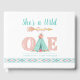 Livre d'or sauvage d'une fête d'anniversaire avec un tipi bleu turquoise et floral et flèche sur un arrière - plan de design tribal aztèque rose et bleu turquoise. Vous pouvez facilement customiser ce livre d'invités de première fête d'un premier anniversaire sauvage mignon avec le nom du bébé sur le devant et la colonne vertébrale.