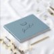 Notre livre d'hôtes estampillé de feuille d'or présente un monogramme de laurier botanique bleu poussiéreux dans un vrai papier chaud. - l'ajout parfait à toute décoration mariage