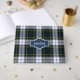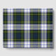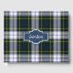 Livre d'invité coloré tout usage fait dans le classique écossais vert, bleu, jaune, noir et blanc Gordon Dress tartan plaid motif. Une zone de texte décorative bleue, à l'avant du livre, a du texte personnalisé blanc prêt à être personnalisé.
