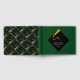 Un conseil d'invité créatif et un livre de voeux de bonne chance avec casquette noir et or sur arrière - plan vert. Pour personnaliser le texte de modification pour ajouter le nom du diplômé, l'école et l'année de la classe supérieure.
