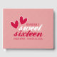 Happy Hearts Sweet sixteen Anniversaire livre d'or présente deux coeurs roses sur un arrière - plan rose rayé en diagonale et est un grand ajout à une fête de seizième anniversaire. © Matin 6