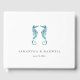 Invitation vos invités mariages à partager leurs souhaits et leur sagesse avec ce livre d'invités de mariage de plage, avec des hippocampes aquarelles dans les tons bleus. Vos noms et la date mariage apparaissent sous la lettre serif classique. Le livre revient à une couleur unie. Pour en savoir plus sur les thèmes des mariages côtiers, visitez www.zazzle.com/dotellabelle Art unique et design de Victoria Grigaliunas de Do Tell A Belle.
