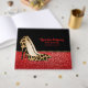 Fashionista event guest book fait noir et un look de parties scintillant rouge, avec des graphiques d'une paire de talons pointus jaguar pointillés. Personnalisez les champs de texte pour votre célébration spéciale.
