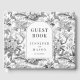 Laissez-vous séduire par l'élégance intemporelle de ce livre d'hôtes mariage raffiné et sophistiqué, orné d'un délicat motif de fleurs bleu clair noir et blanc, complété par un texte noir subtil. Ce livre d'hôtes est un cadeau mariage idéal et chéri, ajoutant une touche de charme intemporel à la journée spéciale du couple.