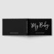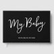 Livre de bébé personnalisé à l'unité avec écriture calligraphique et couverture noire, conçu pour les mamans, doté d'un design minimaliste et élégant, parfait pour préserver l'amour et les souvenirs d'une mère. Le texte blanc sur fond noir ajoute une touche intemporelle, avec « Mon bébé » en écriture calligraphique et le nom de l'enfant avec « Né en 20XX » dans une police sans-serif moderne. La tranche indique « Un livre de moments et de souvenirs », tandis que la couverture arrière porte le message sincère « Avec tout mon amour, Maman. »