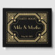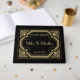 Basé sur un authentique motif Art déco rétro, cet élégant livre d'hôtes personnalisé est parfait pour les mariages ou toute autre occasion spéciale comme les douches nuptiales ou les fêtes et fera un merveilleux souvenir qui sera chéri pendant des années. Fidèle à la tradition du Great Gatsby des années 1920, ce livre d'hôtes est orné d'un audacieux motif décoratif géométrique et de lettres en or sur un arrière - plan noir de jet. Cliquez sur le bouton bleu "Personnaliser" pour ajouter vos propres noms, dates sur tout autre texte que vous souhaitez.
