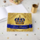 Livre d'or Prince baby shower avec couronne bleu royal et or et sa bannière prince sur un arrière - plan tourbillon or fantaisie. Ce livre d'invité du baby shower prince est facilement customisé pour votre événement en ajoutant du texte et en déplaçant/enlevant la couronne et la bannière au besoin.