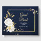 D'or livre d'hôtes chic blanc floral or feuille marine